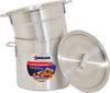 This double boiler is made of heavy gauge reinforced premium aluminum. This economical 3 piece double boiler includes a boiler, an inset, and a lid for complete double boiler service. For easy, secure transport, both the boiler and the inset have two handles each. This double boiler is extremely useful in creating cheesecake, custard, and a variety of other confections. The aluminum construction allows for even heat distribution throughout the cooking process.