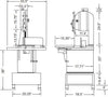 Fabricated in steel with electrostatic oven paint, this saw comes complete with an aluminum head. Its stainless steel table has a four-wheel base that slides on rails. It is equipped with adjustable legs. Easy to disassemble for quick cleaning and maintenance. This unit is perfect for large restaurants, butcher shops, and supermarkets.