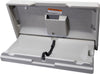 Enhance your commercial restroom's functionality with the Omcan 20" x 35" Grey Polyethylene Horizontal Mount Baby Changing Station Table - 48100. Specifically designed for high-traffic areas such as restaurants, preschools, daycares, churches, and businesses, this baby changing station offers both safety and convenience. Constructed from durable high-density polyethylene, this wall-mounted station is engineered for long-lasting use. The station features a sleek, fold-down design that optimizes space when not in use, while providing a stable platform when open. Its smooth, comfortable concave surface, combined with an adjustable safety strap, ensures that children are securely held in place during diaper changes. The station also includes a built-in sanitary liner dispenser, promoting a clean and hygienic environment.