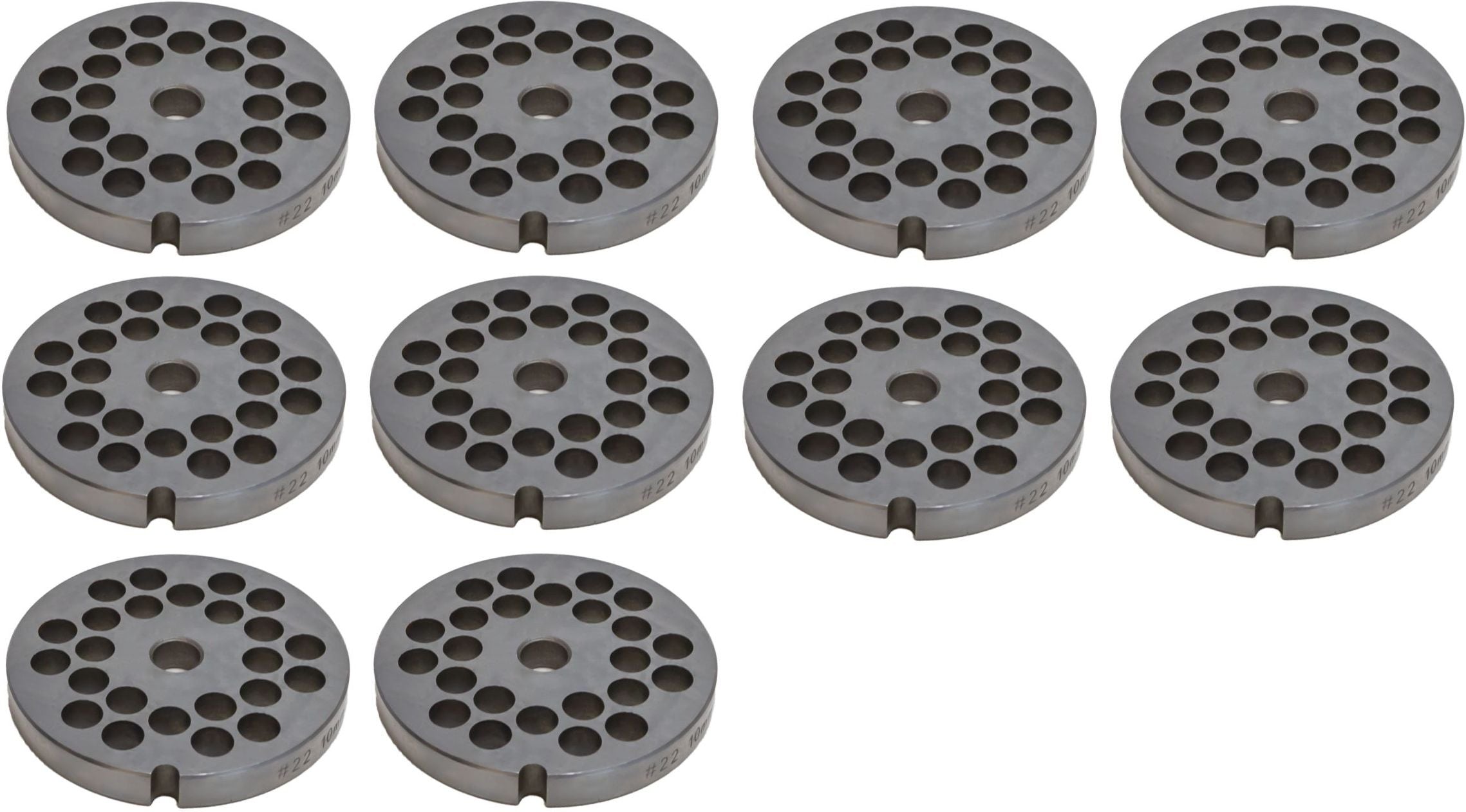 Omcan - #22 (3.5 mm) Carbon Steel Hubless Meat Grinder Plate, Pack of 10 - 11246