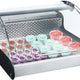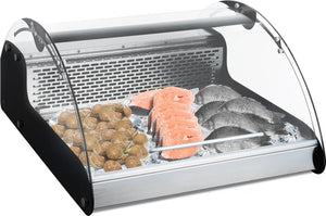 Elegantly display seafood and meat with this stylish curved glass countertop refrigerated showcase.