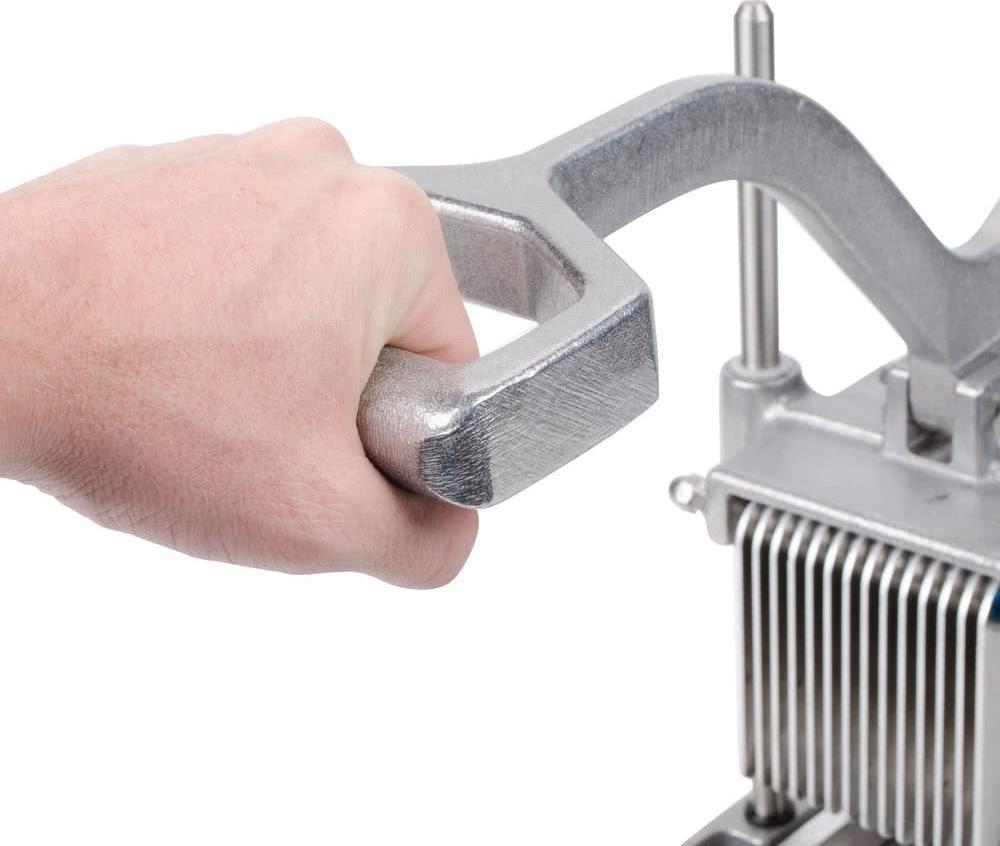 Slice perfect fruits and vegetables every time with the Omcan Countertop Vertical Fruit and Vegetable Slicer. This slicer features sharp stainless steel blades that minimize bruising and squeezing. This product is great for slicing onions, lemons potatoes, limes, tomatoes and oranges.
