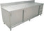 Work efficiently with this worktable with cabinet and 6" backsplash. Ideal for any commercial kitchen to help with food preparation in a busy, fast-paced setting. Featuring 430 stainless steel, this worktable has an enclosed cabinet with sliding doors/drawers and recessed handles to easily store kitchen equipment and other products in need.