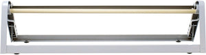 Roll changing is easy with dowel holders and knife arms that lock into an open position. This paper cutter mounts permanently on a wall, under a counter or on a countertop using the supplied rubber feet (mounting hardware not included). Holds up to 9” diameter roll.