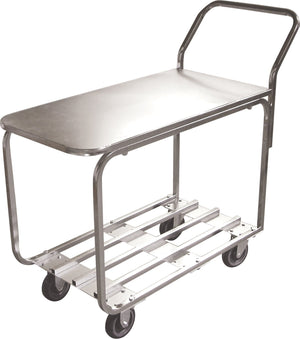 This solid top stock cart has a sturdy construction to endure tough everyday handling and is finished for easy cleaning. Great for supermarkets and various food service operations. Assembly is required.