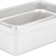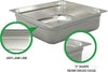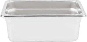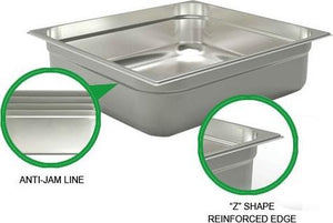 This durable, multi-functional food pan is perfect for any catering and prep services. It can go from warm to cool without warping. It features anti-jamming lines designed for easy, stackable storage.The smooth 24-gauge, 18-8 stainless steel material makes it easy for cleaning too. Perfect for any high-volume restaurant, cafeteria, dining hall, catering business, or any other foodservice establishment, this pan is built to last through heavy commercial use. Use this pan to save money in your commercial establishment as it holds and transports food from your kitchen to off-site locations, or use it to present food in your restaurant's serving area.