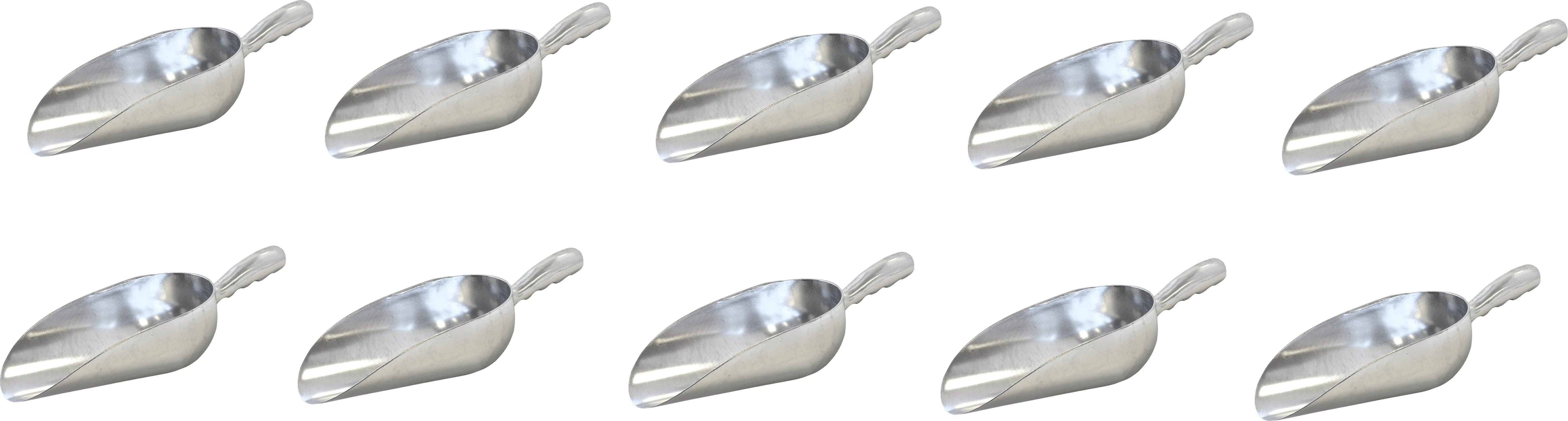 This handy aluminum scoop is a good choice for any food services. Its 1 piece seamless design and the grooved handles give the scoop extra strength. Compared to plastic scoops, aluminum scoops hardly break. Perfect for scooping many items, such as spices, bulk, sugar and ice. The handle features curved finger indentations for a secure, comfortable grip.