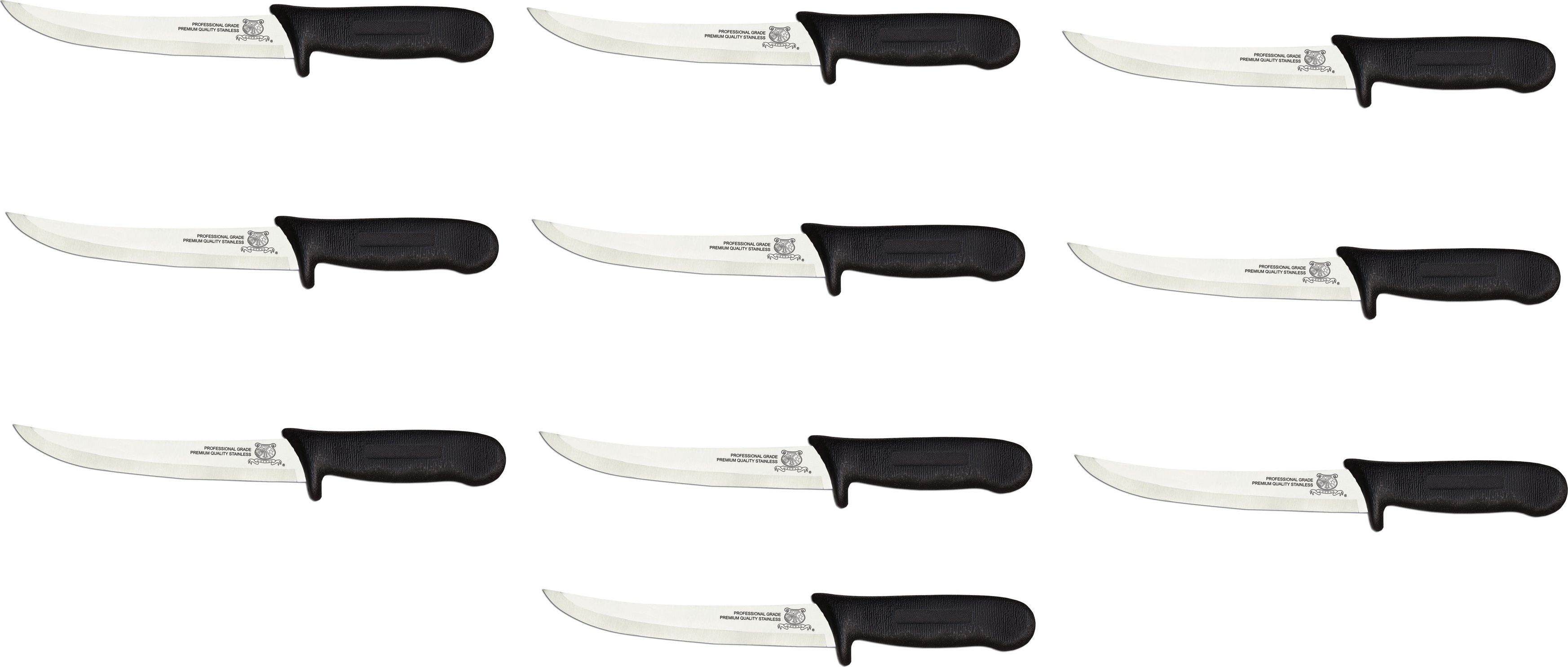Omcan - 6" Black Handle Greban Flexible Curved Blade Boning Knife, Pack of 10 - 11814