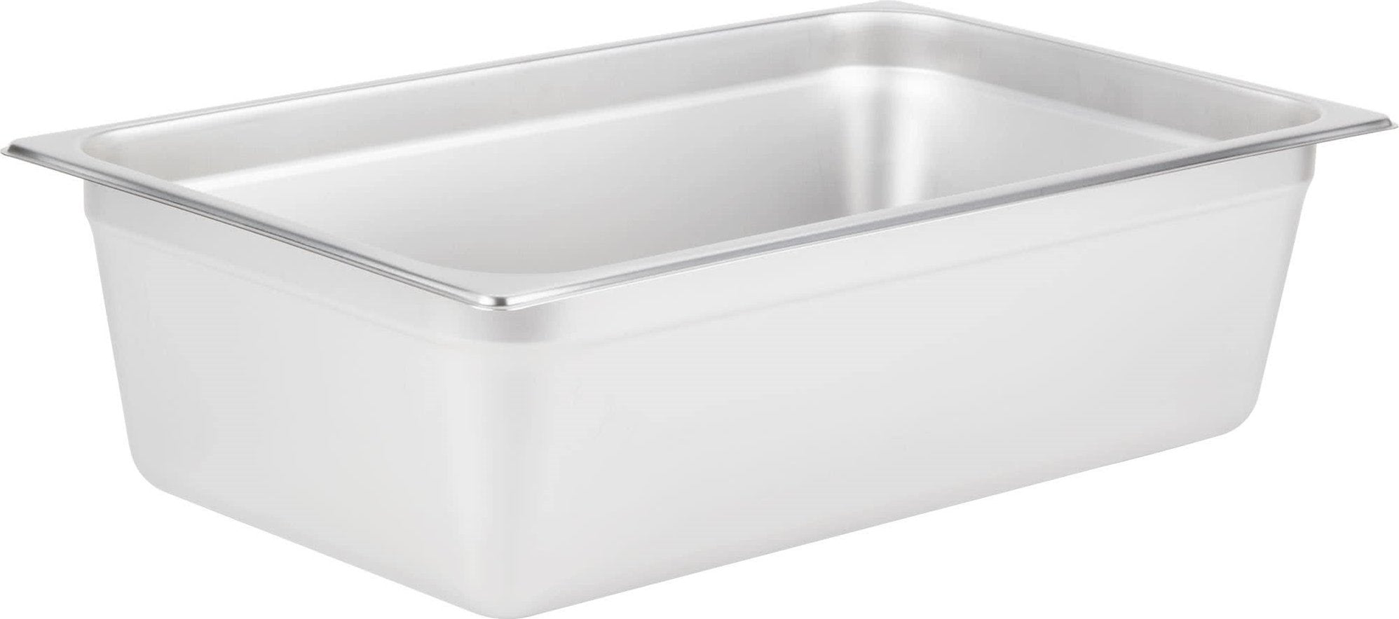 This durable, multi-functional food pan is perfect for any catering and prep services. It can go from warm to cool without warping. It features anti-jamming lines designed for easy, stackable storage.The smooth 24-gauge, 18-8 stainless steel material makes it easy for cleaning too. Perfect for any high-volume restaurant, cafeteria, dining hall, catering business, or any other foodservice establishment, this pan is built to last through heavy commercial use. Use this pan to save money in your commercial establishment as it holds and transports food from your kitchen to off-site locations, or use it to present food in your restaurant's serving area.
