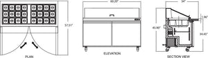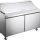This Mega Refrigerated Prep Table provides ample storage space. It is constructed of stainless steel and features self-closing doors. Inserts are not included.