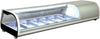 This sushi case is equipped with a high hermetic compressor for efficient condensing with low energy consumption. Designed with an arc-shaped glass to make the food more visible and give the unit a modern and elegant look.