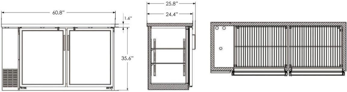 This refrigerated back bar cooler is designed with enduring quality and value. It features a durable stainless steel top, interior walls, floor and ceiling. The exterior construction is attractive corrosion-resistant vinyl on steel in a black finish. The electronic control system makes it easy to adjust temperature set point and defrost frequency. Refrigerant: Hydro-Carbon R290.