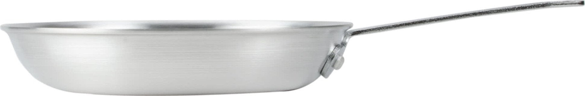 This fry pan is made of heavy gauge reinforced premium aluminum and is the perfect solution for quickly making fajitas, omelettes, pasta dishes, and everything in between! With a shallow, curved-wall design and sturdy aluminum construction, this pan allows for easy stirring and prevents steam from forming in the pan. The aluminum construction allows for even heat distribution throughout the cooking process. Optional silicone cool-handle sleeve sold separately item #43339.