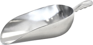 This handy aluminum scoop is a good choice for any food services. Its 1 piece seamless design and the grooved handles give the scoop extra strength. Compared to plastic scoops, aluminum scoops hardly break. The handle features curved finger indentations for a secure, comfortable grip. It has a sleek, professional look and feel, and is the perfect addition to high-volume restaurants and catering kitchens. Use it to scoop anything from sugar and flour to popcorn and candy.