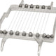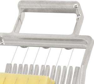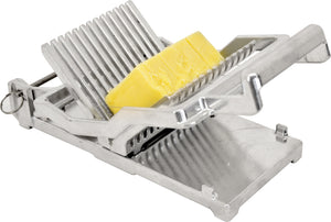 This aluminum cheese cutter is designed for both commercial and residential use. It cuts semi-soft cheese into rectangles, sticks and cubes. Comes with 3/4” and 3/8” interchangeable cutting bows.