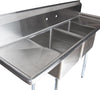 This 18-gauge stainless steel two-compartment prep/utility sink is perfect for warewashing duties in the busiest of restaurants. Nice and deep for easy cleaning of pots and pans. This heavy duty two-compartment pot sink also features a rolled rim edge and drain guards.