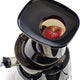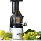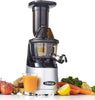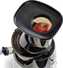 Megamouth vertical low-speed juicer 60RPM with a single auger. Low speed minimizes heat build-up and oxidation. 3-inch feed chute requires less prep. No-drip juice tap Mixing function and easy cleaning with automatic pulp ejection. Powerful motor generates more torque to process tough ingredients. Quiet operation.