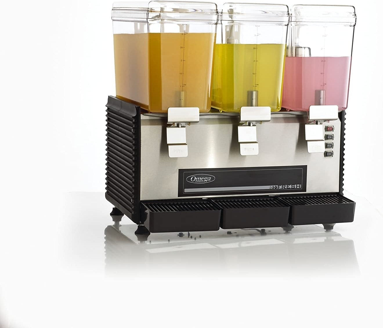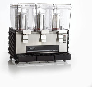 Durably constructed and easy to use, this sturdy drink dispenser makes it possible for guests or customers to serve themselves. The unit provides three 3-gallon containers that can be filled with fruit punch, lemonade, iced tea, or any other favourite beverage, and its convenient design offers one-handed use--simply depress and release the lever with any glass to start and stop the flow. Great for parties or large functions, or for everyday use in a fast-paced commercial setting, the appliance features high-quality materials, including stainless steel and high-impact plastic, to ensure year after year of reliable performance.