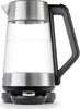 With the OXO Brew Adjustable Temperature Kettle, you can select the precise temperature for your tea or coffee with a simple twist of a knob. Choose any temperature between 170 and 212°F, and the water is heated and held at your preferred temperature for up to 30 minutes. The Kettle is cordless when removed from the base, with a silicone base so you can bring it to the table without worrying about damaging surfaces. The crystal-clear, BPA-free borosilicate glass ensures a pure, clean taste.