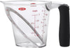 Built For Ease - OXO has revolutionized liquid measuring with our Angled Measuring Cups. A patented angled surface lets you read measurement markings by looking straight down into the Cup and eliminates the need to fill, check and adjust the amount of liquid you are measuring.