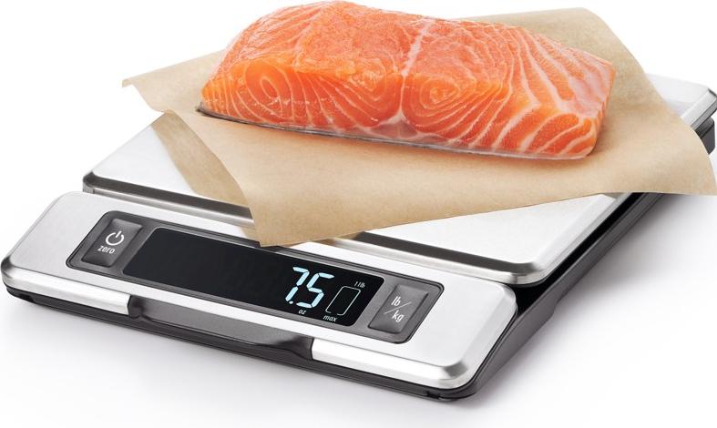 The OXO Good Grips 11 lb Scale can add and weigh without getting in the way. Simply pull the easy-to-read display out to use – the innovative design prevents shadowing from bowls or plates – and slide the display back in for compact storage. The Scale features a zero function and a unit conversion button to measure in 0.1-oz (US) and 1-g (metric) increments for greater accuracy.