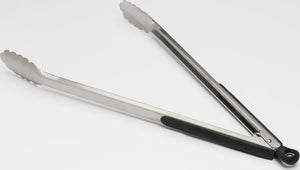 Featuring soft, non-slip handles and comfortable thumb rests. Easily lock these tongs in the closed position for convenient storage. The lock consists of a large pull-tab that doubles as a hole for hanging. Dishwasher safe.