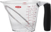 Built For Ease - OXO has revolutionized liquid measuring with our Angled Measuring Cups. A patented angled surface lets you read measurement markings by looking straight down into the Cup and eliminates the need to fill, check and adjust the amount of liquid you are measuring.