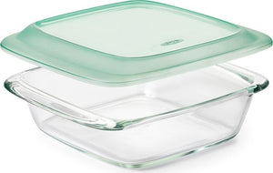 OXO Glass Bakeware is made of thermal shock resistant borosilicate glass, which means it can go from freezer to oven without the need to thaw. This Baking Dish has wide, comfortable handles which make it easy to transport from oven to countertop or table, and the slosh-proof lid makes it easy to prepare meals in advance, store leftovers, or take on the go.