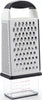 Our Box Grater features 4 stainless steel surfaces: 2 wide ones for coarse and medium grating and 2 slimmer ones for fine grating and slicing. A convenient container with non-slip base, measurement markings and lid attaches to the bottom for catching and storing freshly grated ingredients. Slimmer, super-fine grating surface is just right for nutmeg and ginger, and the slicing surface yields perfect slices of cucumber, zucchini, cheese and more.