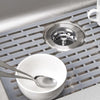 When dishes slip, the soft silicone Mat provides a safe landing. Heat-resistant up to 425°F, so you can move pots and pans into the sink directly from the stove. Designed to let air and water flow freely. If you want to have an opening around your drain, the Silicone Sink Mat has a convenient pattern that allows you to cut a hole exactly where you need it, whether your drain is in the center or the back of your sink. Also available in a smaller size.