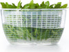Dry salad greens or herbs with a simple press of the soft, non-slip knob. The non-slip base keeps the bowl steady on the countertop and the built-in brake button stops the Salad Spinner for unloading. The basket doubles as a colander, and the lid comes apart for easy cleaning.