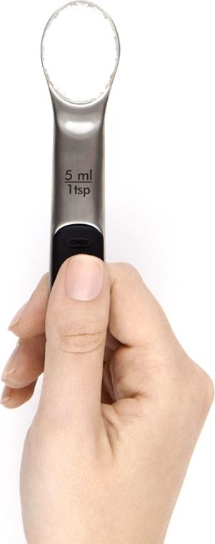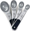 The Stainless Steel Measuring Spoons' unique magnetic feature keeps the spoons neatly stacked together and allows you to easily remove one at a time. The soft, comfortable, non-slip handles feature permanent, etched measurement markings. Set includes 1/4 tsp, 1/2 tsp, 1 tsp and 1 T Spoons. Dishwasher safe.