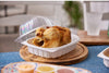 Beyond its primary function as a chicken roaster, this versatile container can be used for a myriad of culinary purposes. Its spacious design makes it suitable for roasting other meats, vegetables, or even for baking casseroles or desserts. The multi-functional nature of the container adds value to your kitchen arsenal, offering flexibility in meal preparation and serving. The White Medium Chicken Roaster Container with Base from Pactiv Evergreen is not only a culinary asset but also considers environmental responsibility. The materials used in its construction are chosen with sustainability in mind, meeting industry standards for eco-friendly packaging. This commitment to sustainability aligns with the growing consciousness towards reducing environmental impact, making it a conscientious choice for eco-minded consumers.