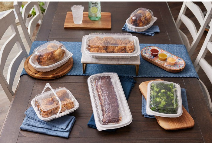 The container's construction material is of exceptional quality, ensuring its ability to withstand high temperatures without warping or compromising its structural integrity. This durability allows for repeated use, making it a cost-effective and long-lasting addition to your kitchen essentials. The robustness of the container offers peace of mind, knowing that it can handle the demands of various cooking methods, including baking, roasting, and even reheating leftovers. Pactiv Evergreen prioritizes user convenience, and this chicken roaster container exemplifies that commitment. Its thoughtful design includes features that simplify the cooking process. The container's shape and size are optimized to comfortably accommodate a medium-sized chicken, allowing for even cooking and browning. Additionally, the base ensures that the chicken remains elevated, allowing heat to circulate evenly around the bird, resulting in a crispy and succulent outcome.