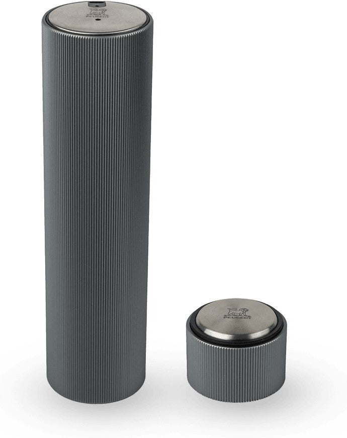 The Peugeot Line Reverse 10.5" Aluminum Automatic Corkscrew redefines the art of uncorking with its innovative design and effortless operation. Featuring a fully automatic cork extraction system, this electric corkscrew simplifies the task of opening bottles to just a press on top of the bottle. With a smart cork ejection feature activated by a simple flick of the wrist, enjoying your favorite wines has never been easier.
