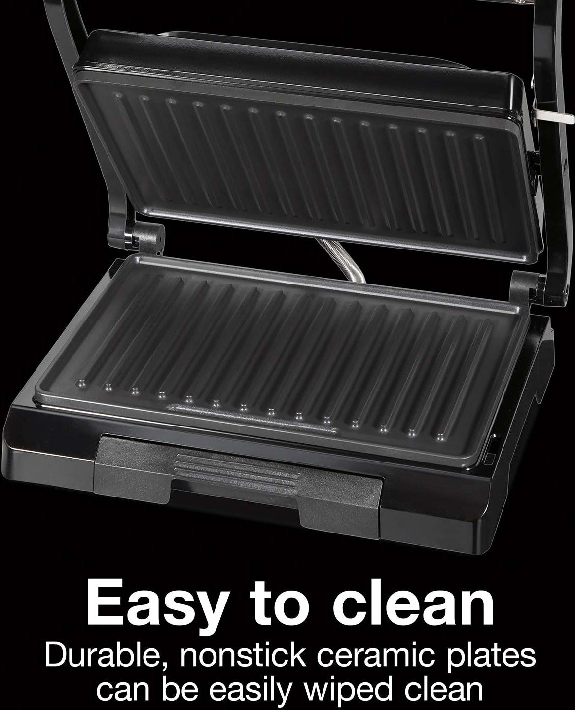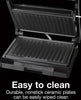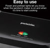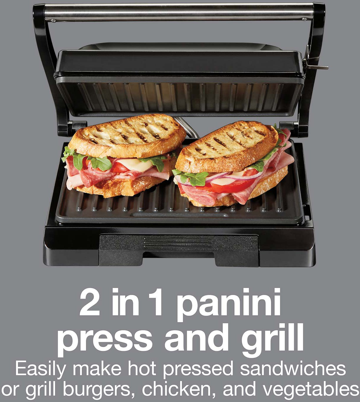 - 2-in-1 Design: Functions as both a panini press and a compact grill, ideal for making grilled sandwiches like paninis, grilled cheese, Reubens, and even grilling burgers, chicken, and vegetables.