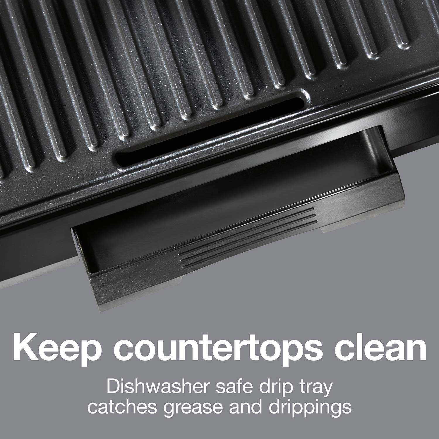 - Dishwasher Safe: Includes a slide-out drip tray that catches grease and drippings, keeping countertops clean. The drip tray is dishwasher safe for hassle-free cleanup.