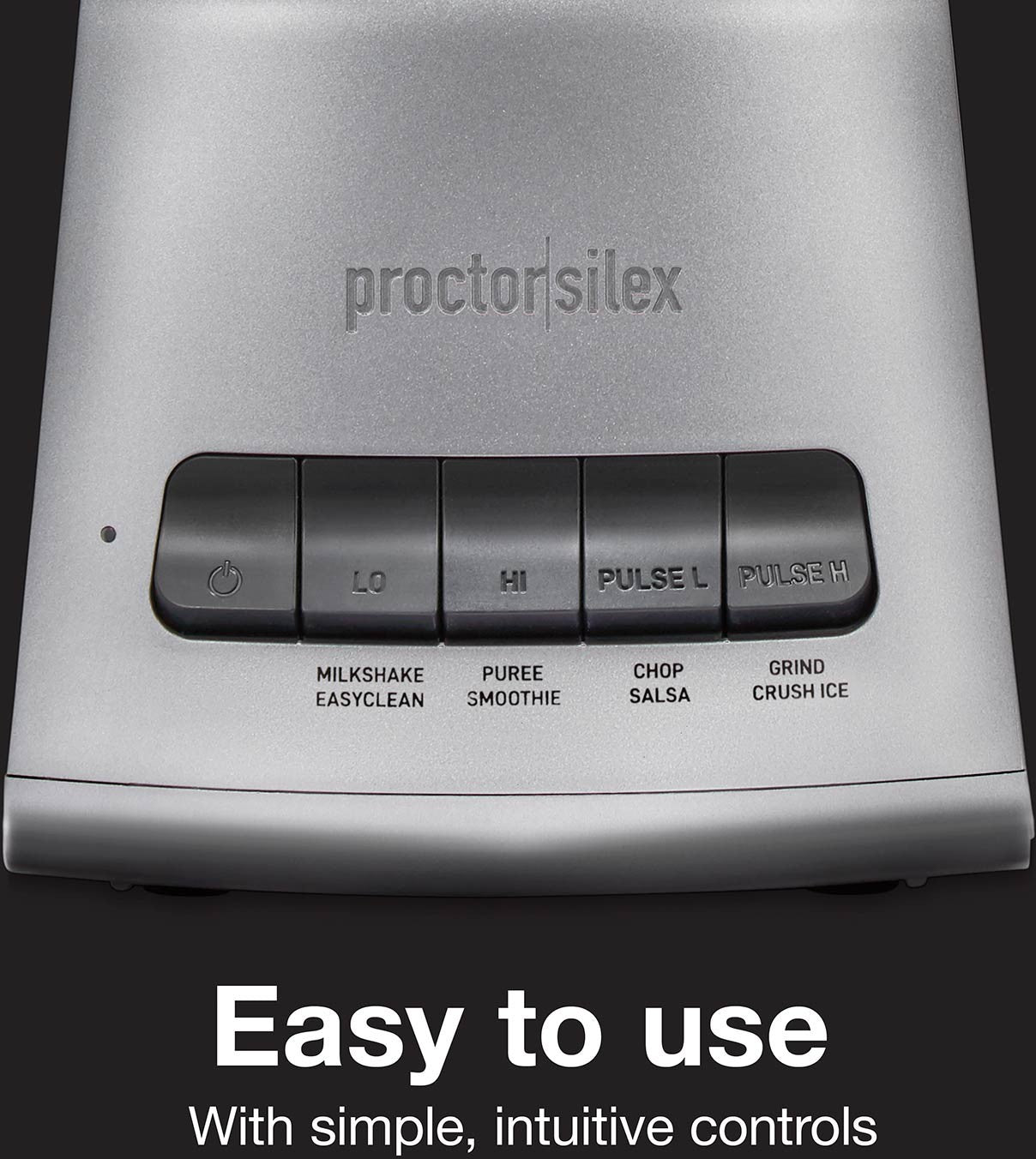 Discover the power and efficiency of the Proctor Silex® 52 oz. High Performance Blender. Engineered for durability and performance, this blender is designed to deliver consistently smooth results with ease. Whether you're blending frozen fruits for smoothies, crushing ice for cocktails, or pureeing soups, this blender handles it all effortlessly. The Proctor Silex 52 oz. High Performance Blender combines robust power with durable construction and user-friendly features, making it a versatile addition to any kitchen. Perfect for blending everything from smoothies to soups, this blender ensures reliable performance and smooth operation every time, backed by Proctor Silex's commitment to quality and longevity.