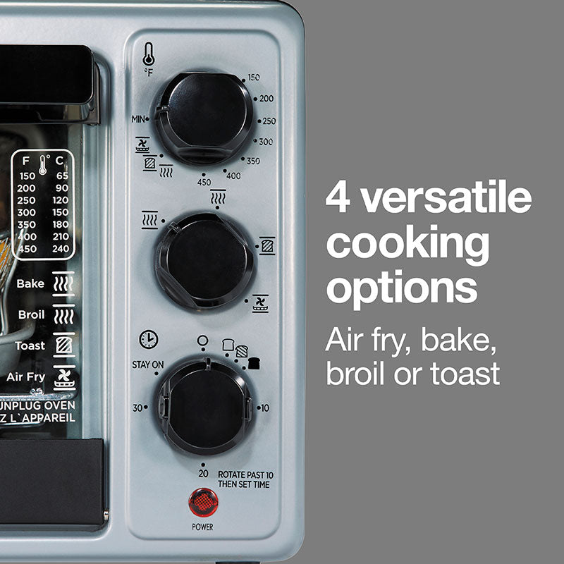 - 4 Cooking Functions: Air frying*, baking, broiling, and toasting, providing flexibility for a wide range of recipes.