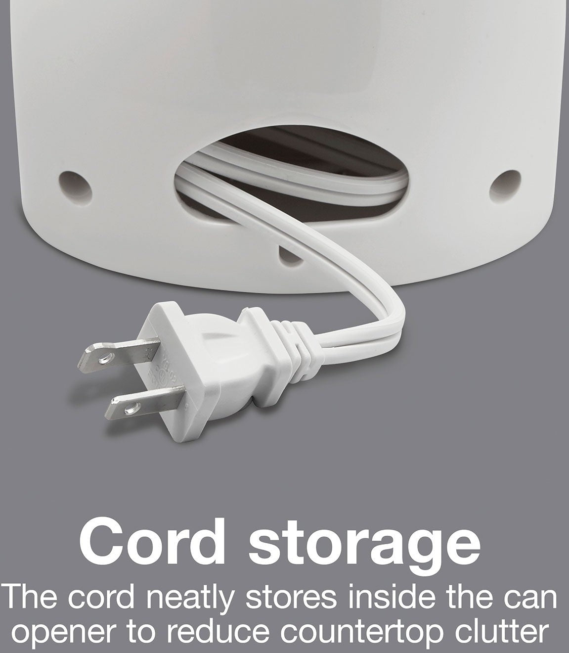 - Cord Storage: Neatly stores the cord inside the base of the can opener, reducing countertop clutter and maintaining a tidy kitchen workspace.