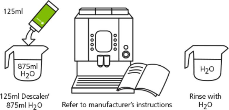 • Add 125mL of Organic Descaler to 875mL of water to make up 1L of descaling solution