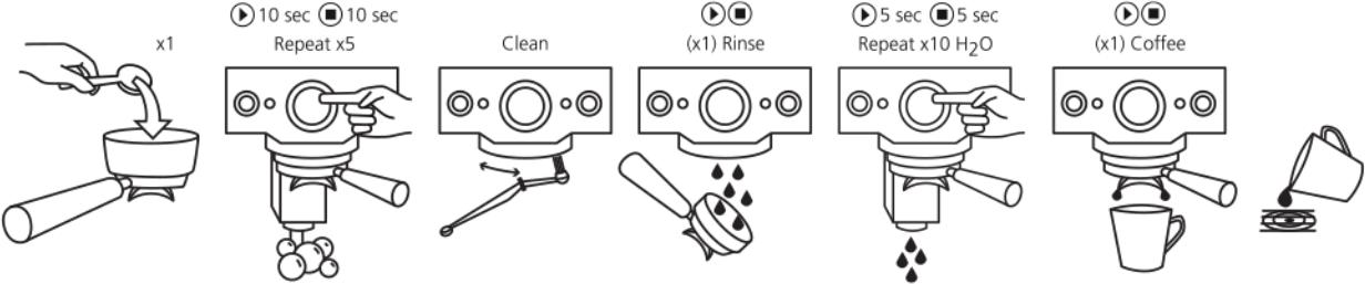 - For daily cleaning add 1 level scoop of Espresso Clean into the group handle and insert as if brewing espresso. If the machine is cleaned less often, use 2 level scoops
