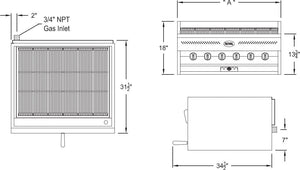 Crafted with a sleek and durable design, this broiler boasts stainless steel sides, a front valve cover, and a ledge. You have precise control over your cooking with individual manual valves for each burner, and the heavy-duty cast iron top grates are designed to last. High-powered stainless steel burners deliver 20,000 BTU/hr each for intense heat and perfect results. Customize your grilling experience with a 5-position cooking grate tilt adjustment controlled by an easy-grip lever handle. Safety is paramount, with standing pilots for instant and safe ignition for each burner. The Royal 48"s 48-inch deep cooking surface provides ample room for your culinary creations.