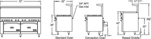 The Royal 72" Delux Stainless Steel Gas Range with Two 26.5" Wide Ovens is the epitome of culinary excellence, meticulously crafted for professional chefs and passionate home cooks. Engineered for durability and precision, this gas range boasts a sturdy stainless steel build that not only adds a touch of sophistication to your kitchen but also ensures long-term reliability and easy cleaning. With the luxury of two expansive 26.5" wide ovens, you have the freedom to concurrently bake, roast, and broil a diverse array of dishes, while the 72" cooktop incorporates robust burners to cater to an extensive range of cooking methods, from high-heat searing to gentle simmering. Whether you're a professional chef aiming to optimize your kitchen's capabilities or an enthusiastic home cook looking to elevate your culinary prowess, the Royal Gas Range is your gateway to culinary mastery, enabling you to prepare a diverse and delectable spread of dishes that will impress even the most discerning palates.