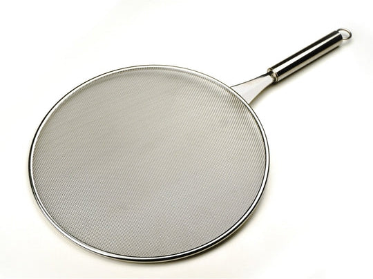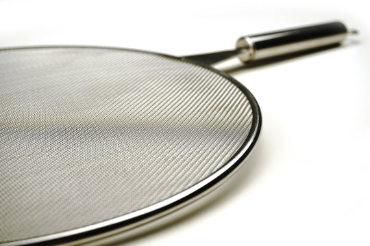 Our Endurance Double Fine-Mesh Splatter Screen is large at 13-inches in diameter, with a handle that is 6.25" long to allow the splatter screen to sit perfectly on fry pans, cast-iron fry pans, stock pots, Woks and non-stick skillets; comfortable long handle keeps hands safely away from heat and hot oil, protecting your skin and safeguarding your clothing from stains and messy grease. Handle stays cool alleviating the need for special potholders or mitts.