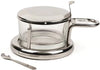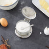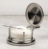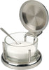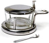 Beautifully designed salt server with glass insert and polished stainless steel base is ideal for working in the kitchen or serving at the table. Durable 18/8 stainless steel frame holds an 8 oz. glass bowl. This attractive server comes with a stainless steel salt spoon and features a flip top lid for easy one handed access and countertop storage. The stainless lid includes a silicone gasket to keep salt, sugar or herb blends clean and dry. Dishwasher safe but we recommend hand washing.