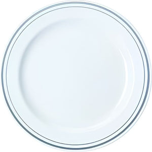 Sabert - 6" White Round Plate with Silver Decorative Rings, 144/Cs - 6IMP144S