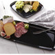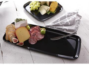 Sleek and Modern Design: The Mozaek 9"x 22" Plastic Black Rectangle Platter features a sleek and modern design, adding a touch of contemporary elegance to your table setting. The black color enhances the overall presentation, making it a stylish choice for a variety of culinary delights.