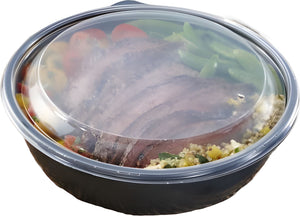 The Sabert Round Dome Lid, designed to fit both 32 Oz and 48 Oz Plastic Containers, comes in a case of 150, offering a practical and versatile solution for food storage, transportation, and presentation. This lid is part of Sabert's Hot Collection, a comprehensive line that includes bowls, and single and multiple compartment containers in various sizes and shapes. Notably, these lids are microwave-safe, adding convenience to the reheating process. Sabert's Round Dome Lid for 32 Oz and 48 Oz Plastic Containers adds functionality and convenience to the Hot Collection, ensuring that the containers remain securely covered while offering the added benefit of microwave-safe reheating. This combination makes them suitable for a wide range of hot food applications in various settings.