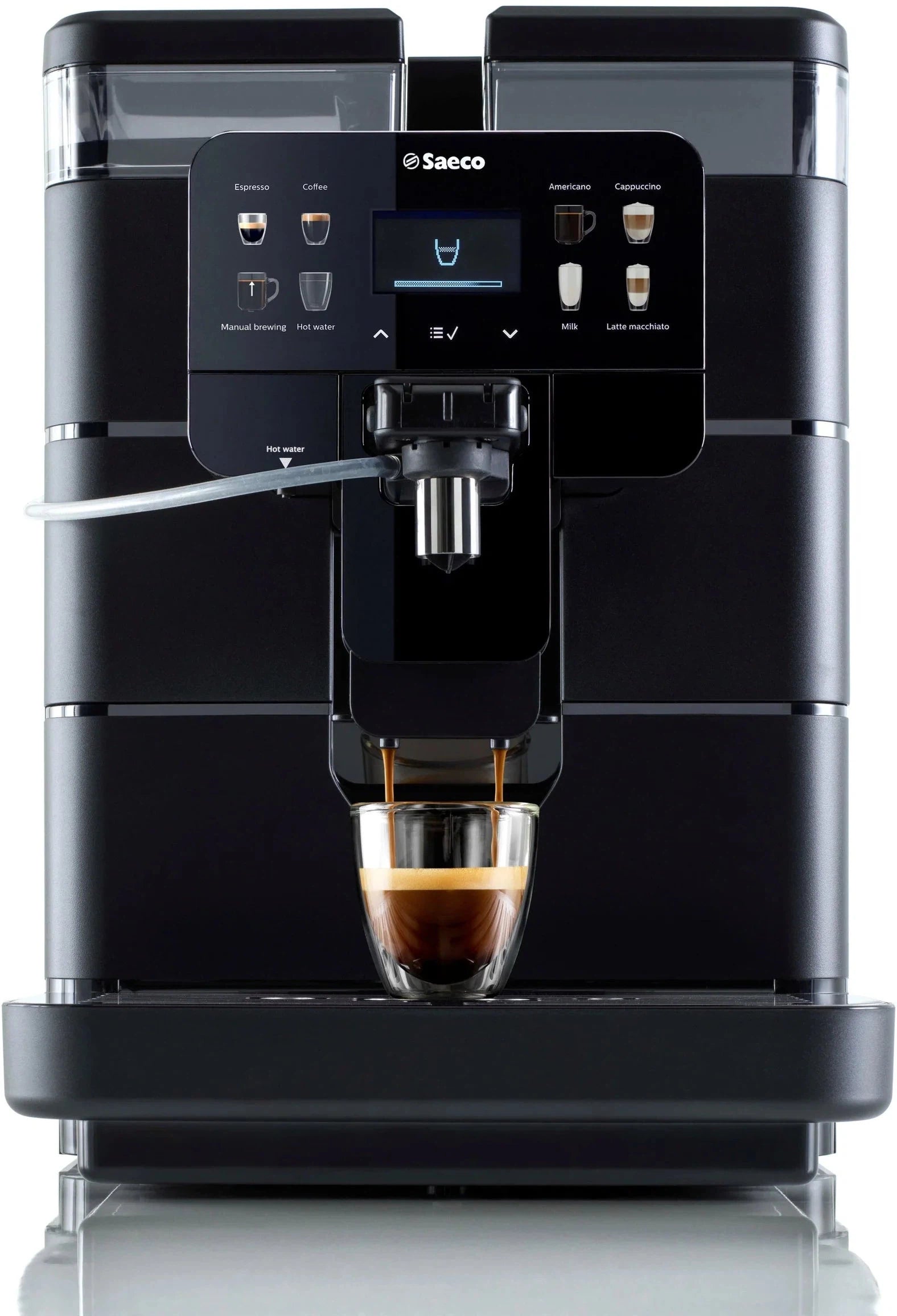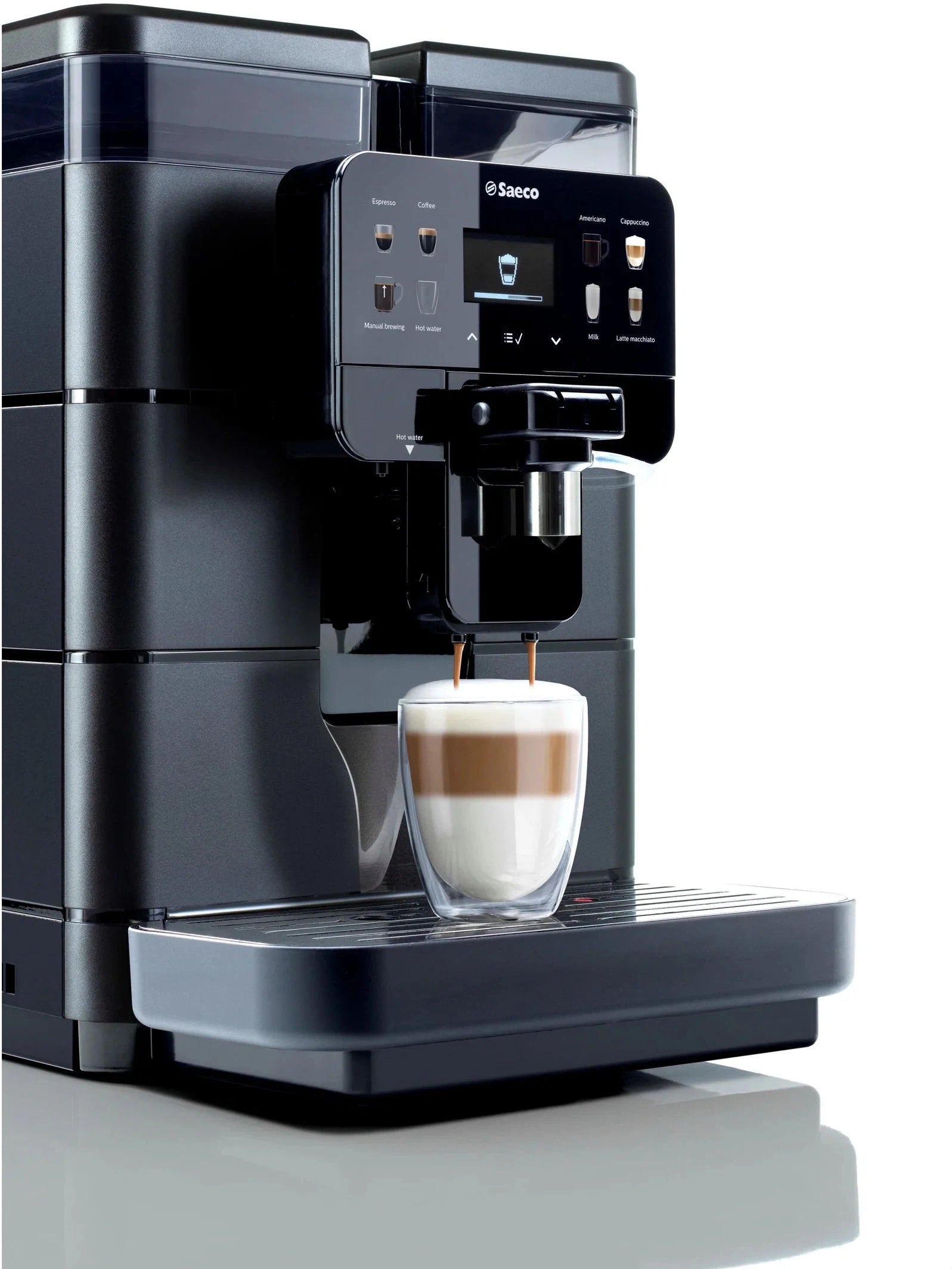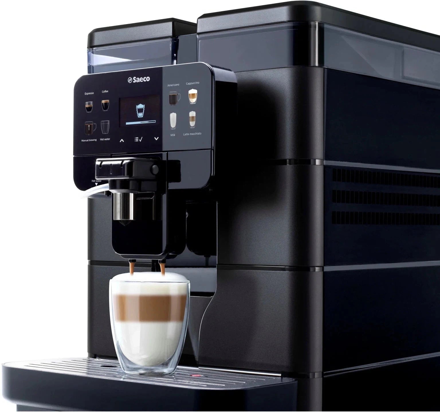 he Saeco Royal OTC offers one of the most consistent and hot milk frothing systems in the industry. All it takes is one touch for a delicious and piping hot cappuccino or latte.